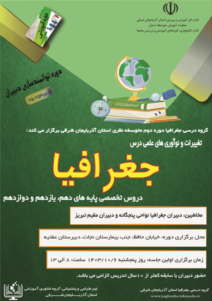 پوستر دوره تخصصی پایه های دهم ، یازدهم ، دوازدهم جغرافیاپوستر دوره تخصصی پایه های دهم ، یازدهم ، دوازدهم جغرافیا